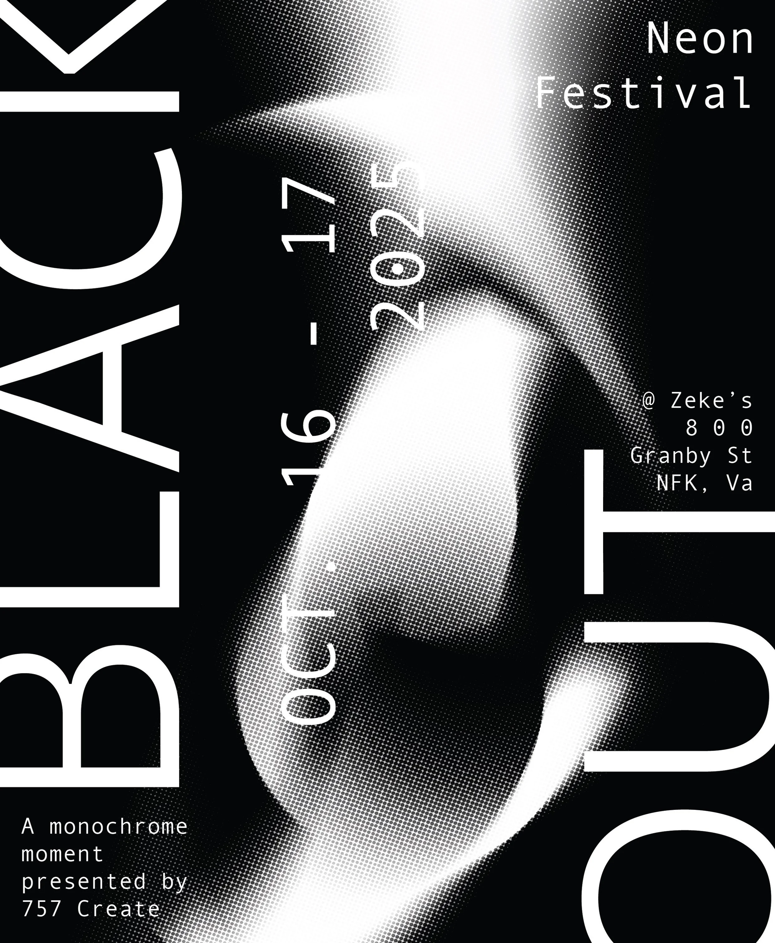 Our largest show yet, Blackout will be on display for the entirety of October at Zeke’s on Granby. Over 60 artists throughout Hampton Roads submitted their work to display, 100% artwork sales go directly to the artists.