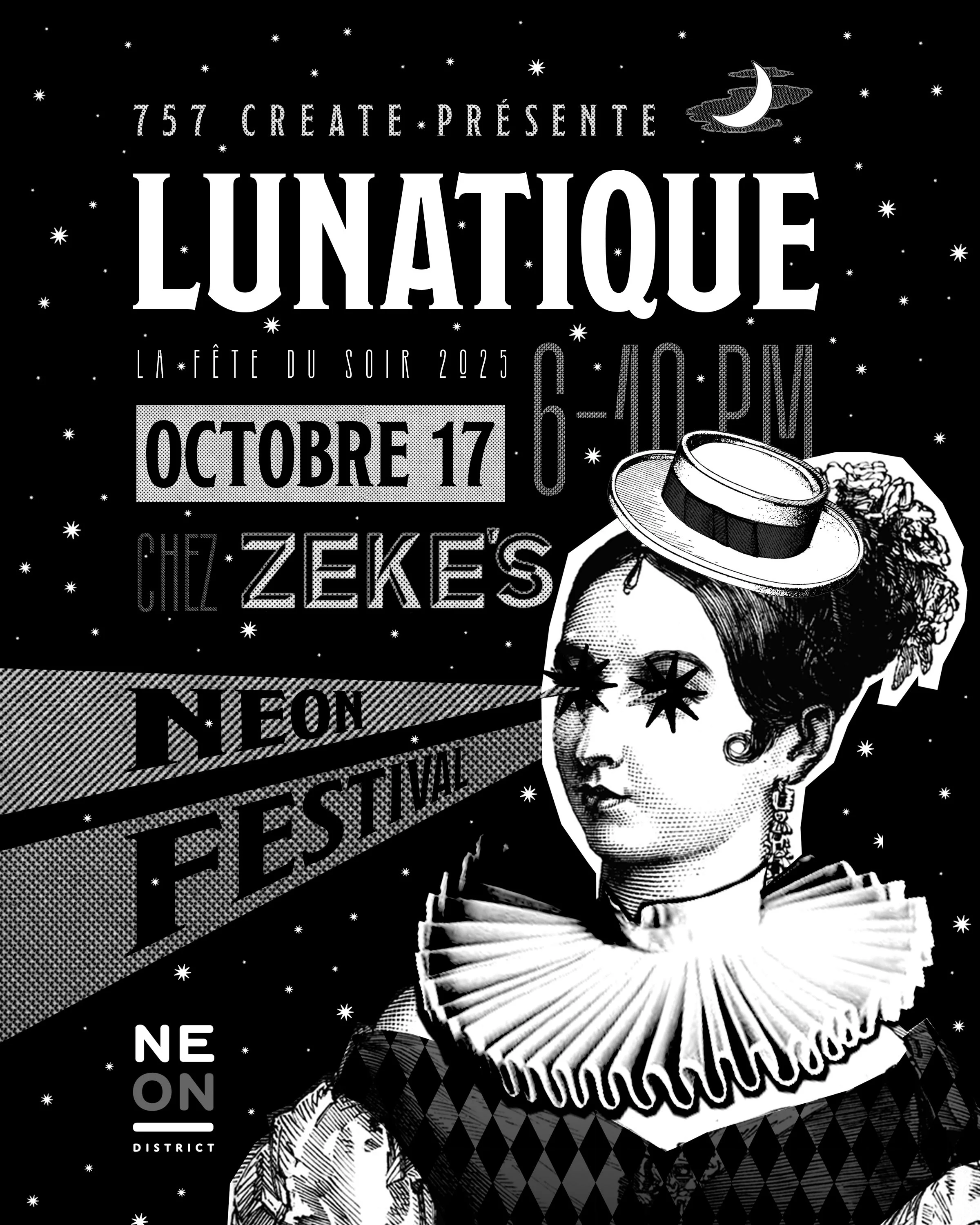 Bienvenue et enchanté! Lunatique will be a refuge during the 10th annual NEON Festival. Nestled in the back patio of Zeke’s on Granby, for one night only experience an outdoor lounge inspired by Père-Lachaise in France.